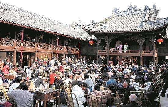 成都新津太平镇黄州会馆喝茶看戏的市民游客。