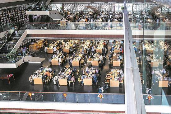 省图书馆里利用假期阅读充电的市民。