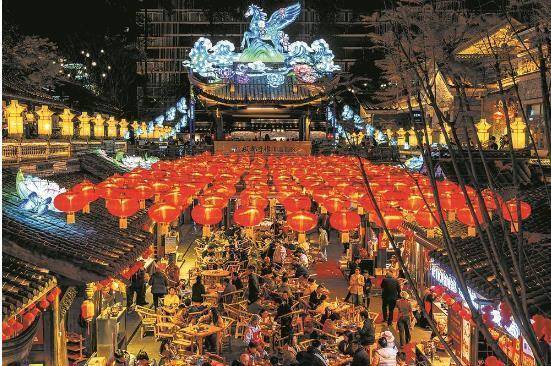 春熙路、太古里商圈人流如织,宽窄巷子游人摩肩接踵,处处皆是新春的热闹图景;东郊记忆里,成都造机器人精彩亮相、灵动互动,将科技风采与新春氛围巧妙融合,成为游人打卡的新亮点。玉林西路灯火氤氲、暖意融融,东门市井花灯璀璨、年味浓郁,游人穿梭其间,赏年俗、品美食、拍美景,沉浸式感受着成都的鲜活气息与热忱底色。